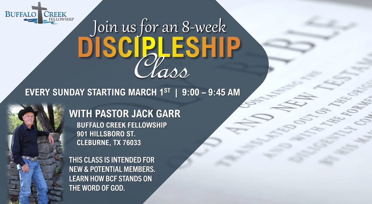 This class is intended for new members and potential members. Come and learn how Buffalo Creek Fellowship stands on the Word of God.