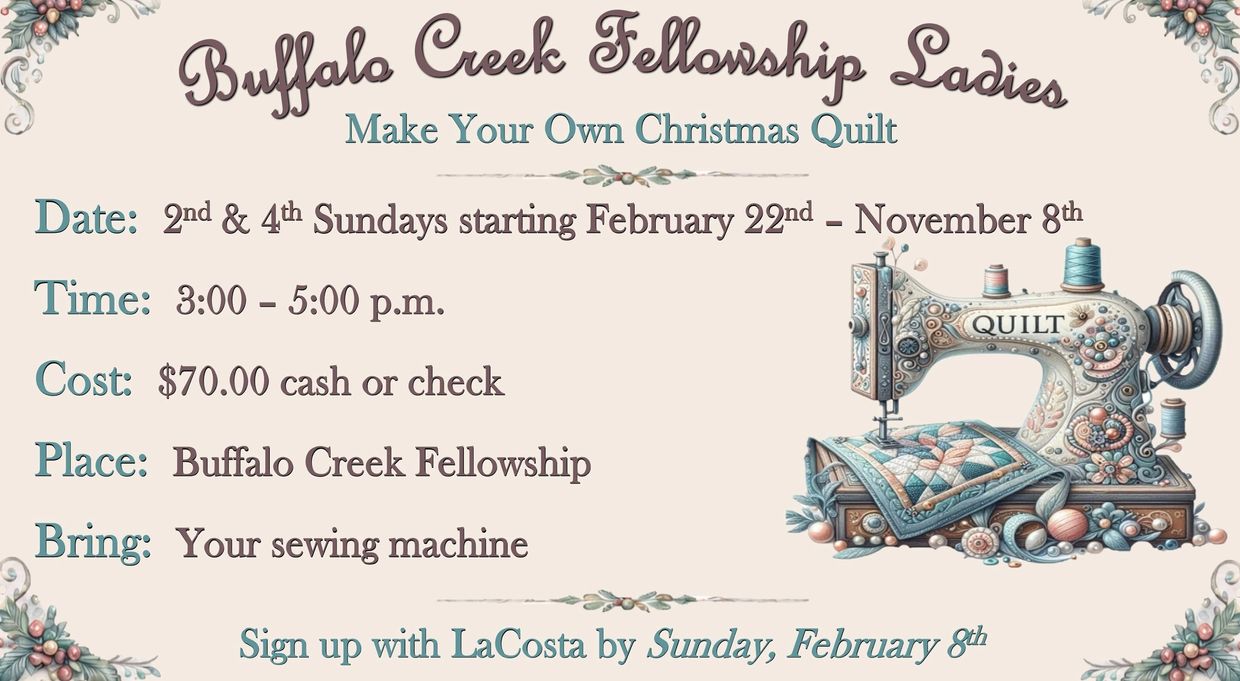 For Questions or comments, please contact buffalocreekfellowship@gmail.com